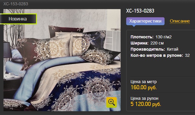 Своим блеском, глянцевой поверхностью и мягкостью, сатин напоминает шелк. Характеризуется высокой износостойкостью. Краски не блекнут даже после многократного количества стирок. Геометрический рисунок в виде широких, параллельный полос синего, голубого и бежевого цвета. Изысканным акцентом выступают крупные золотые снежинки. Сатин используется для пошива постельного белья среднего класса и класса люкс.