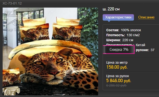 Своим блеском, глянцевой поверхностью и мягкостью, сатин напоминает шелк. Характеризуется высокой износостойкостью. Краски не блекнут даже после многократного количества стирок. Рисунком выступает изображение животного – леопард. Сатин используется для пошива постельного белья среднего и премиум-класса.